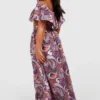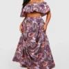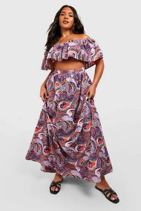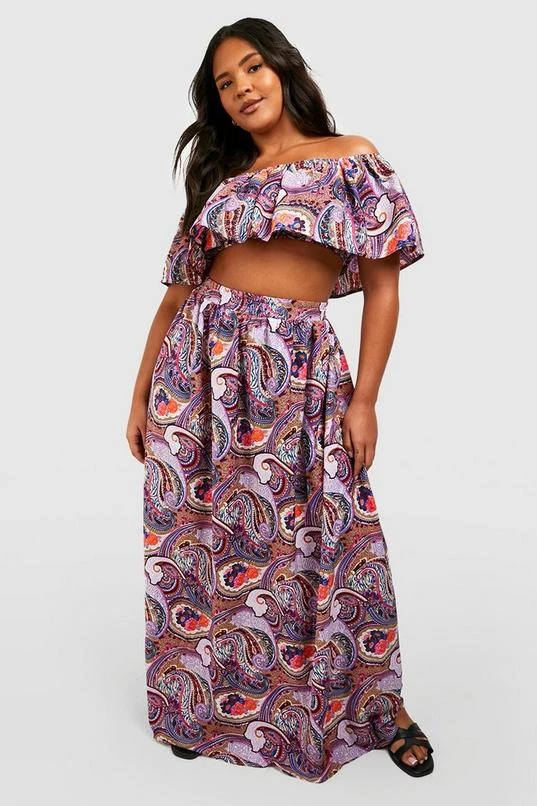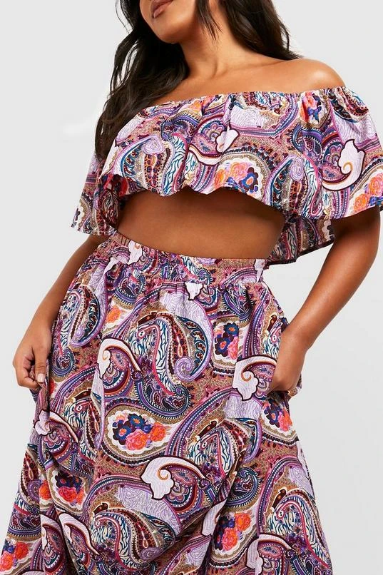 BOOHOO Plus Paisley Ruffle Off The Shoulder Top And Maxi Skirt