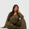 BOOHOO Plus Peached Jersey Long Sleeve Button Pj Shirt