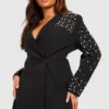 BOOHOO Plus Pearl Embellished Blazer Dress