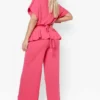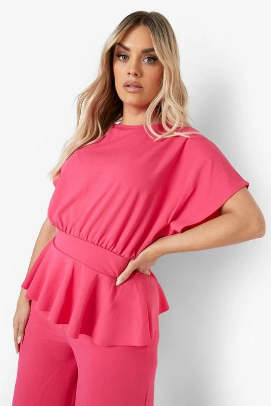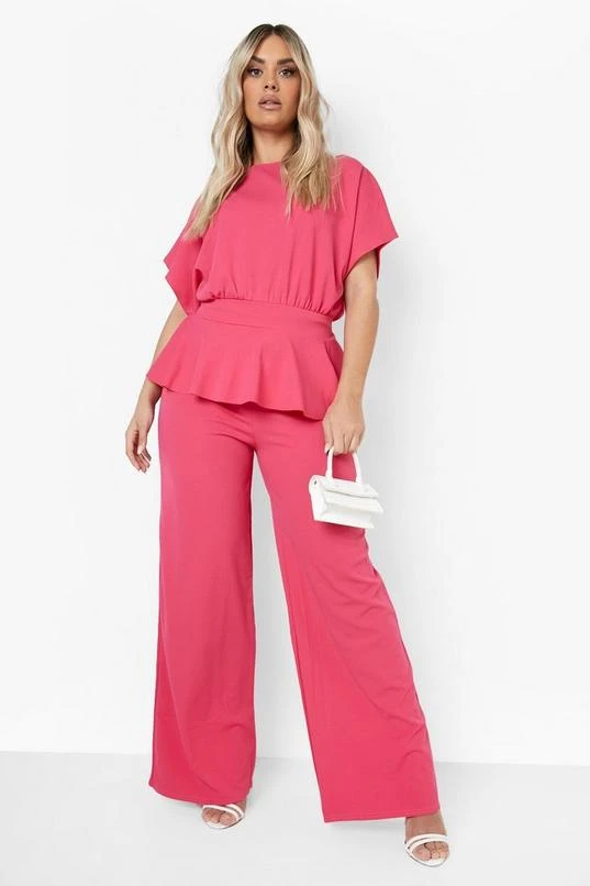 BOOHOO Plus Peplum Top And Wide Leg Pants Two-Piece