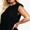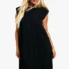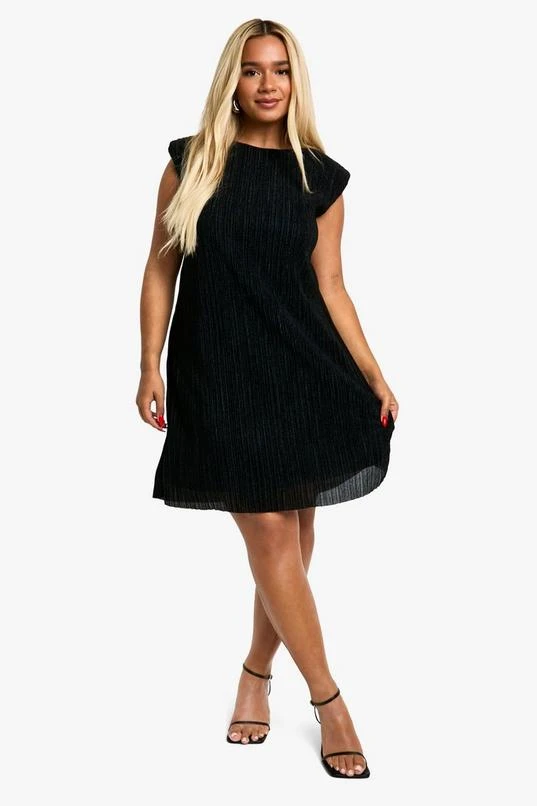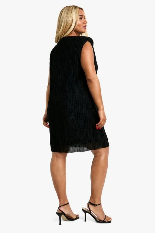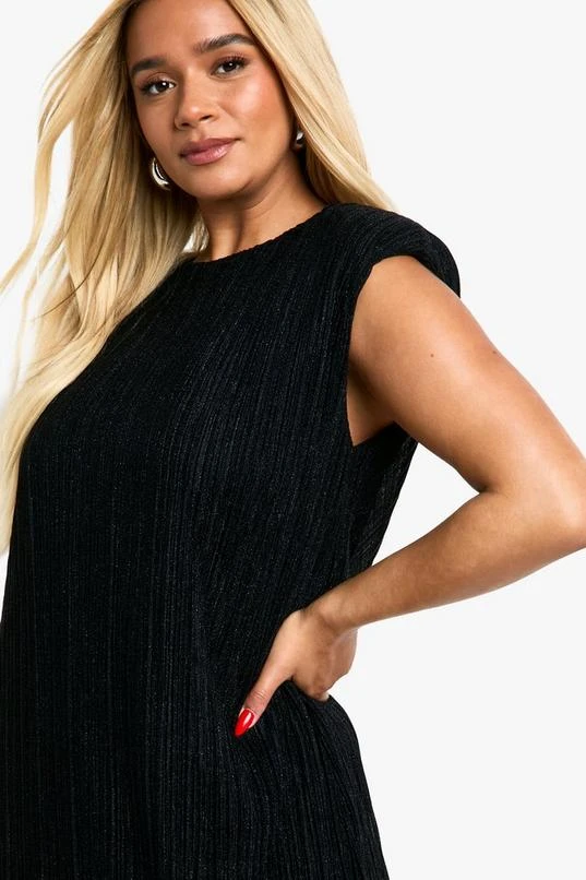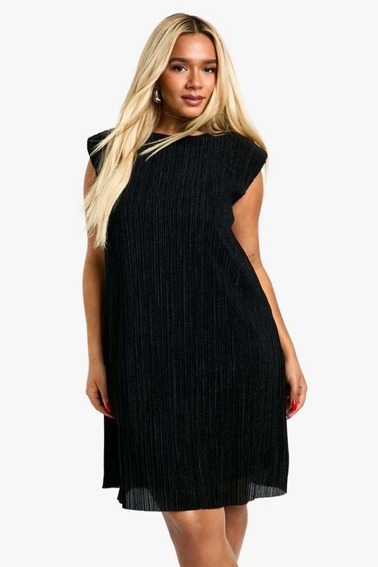 BOOHOO Plus Pleated Metallic Shoulder Pad Shift Dress