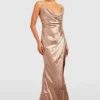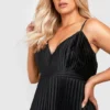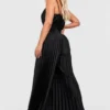 BOOHOO Plus Pleated Satin Strappy Wide Leg Jumpsuit