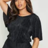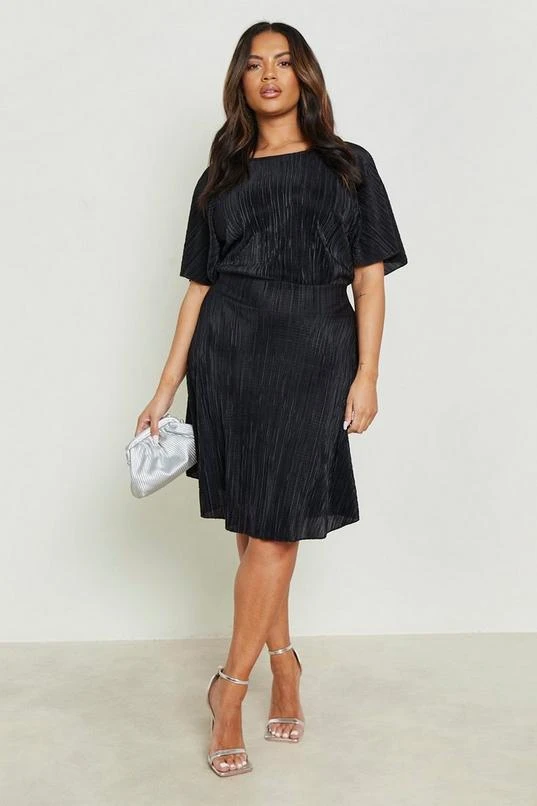 BOOHOO Plus Plisse Angel Sleeve Skater Dress