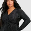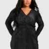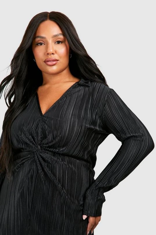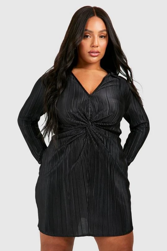 BOOHOO Plus Plisse Twist Front Shirt Dress