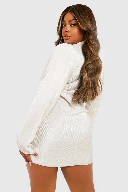 BOOHOO Plus Plisse Twist Shirt Dress