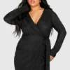 BOOHOO Plus Plisse Wrap Mini Dress