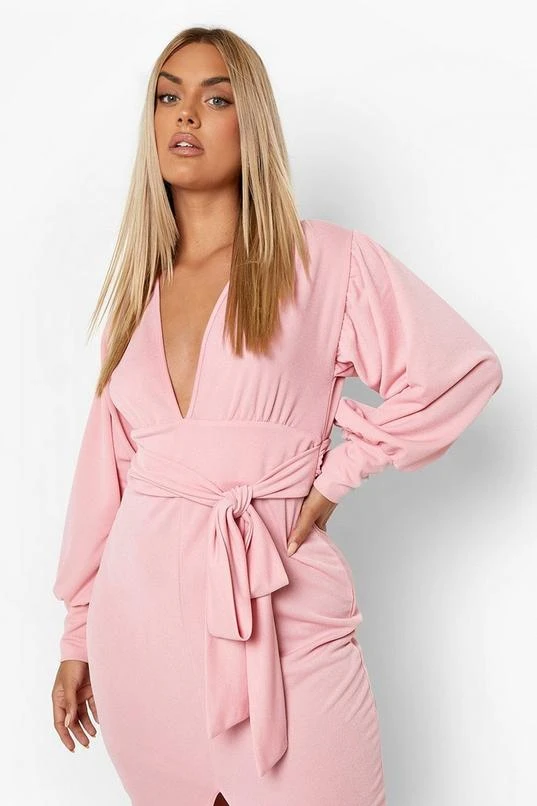 BOOHOO Plus Plunge Tie Waist Midi Dress