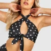 BOOHOO Plus Polka Reversible Tie Front Bikini Top