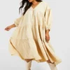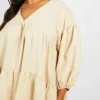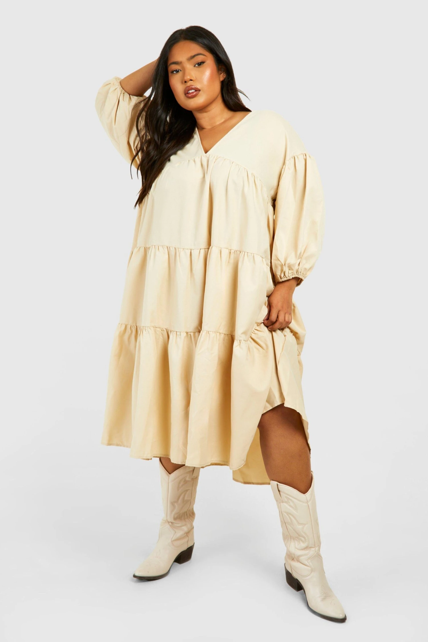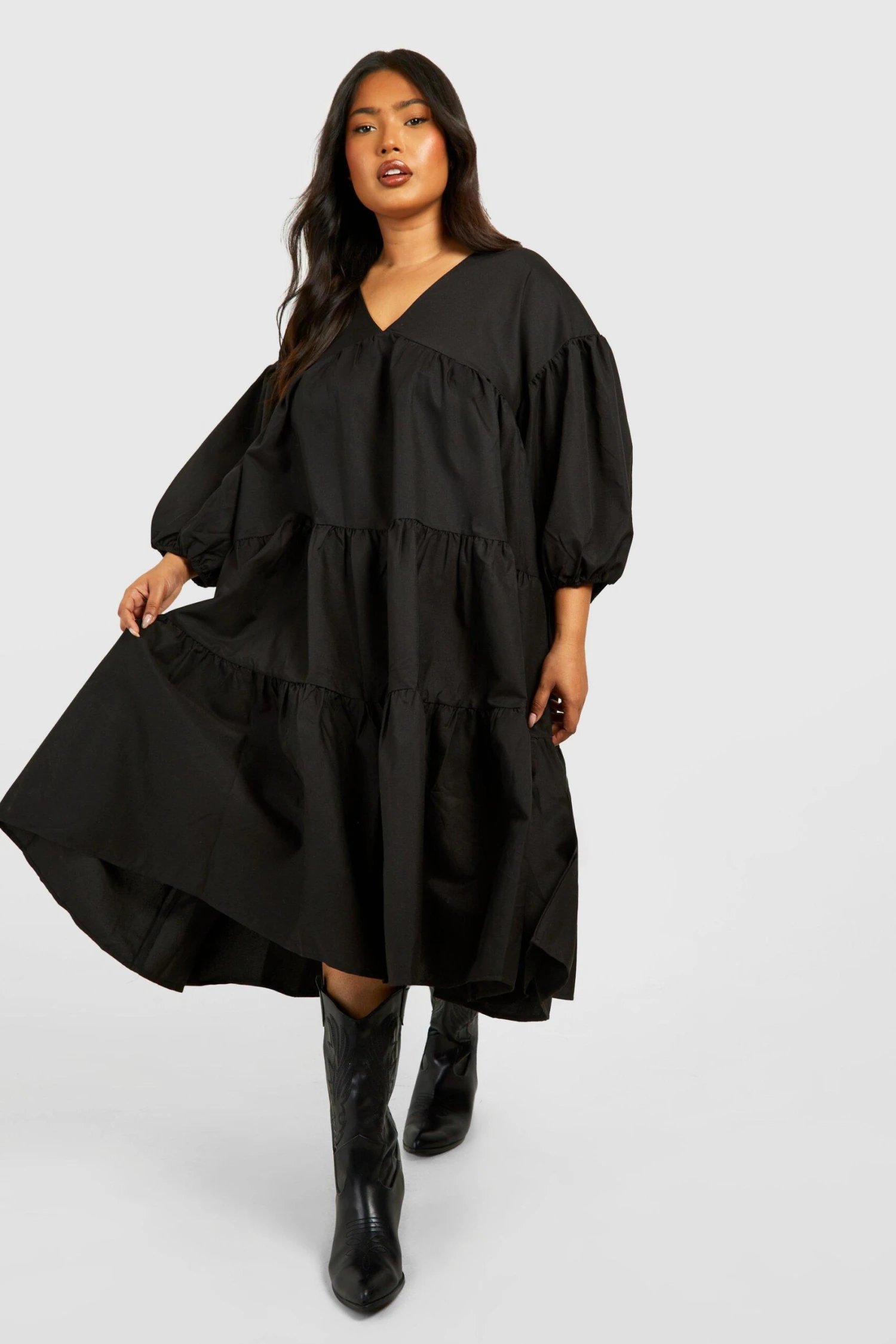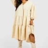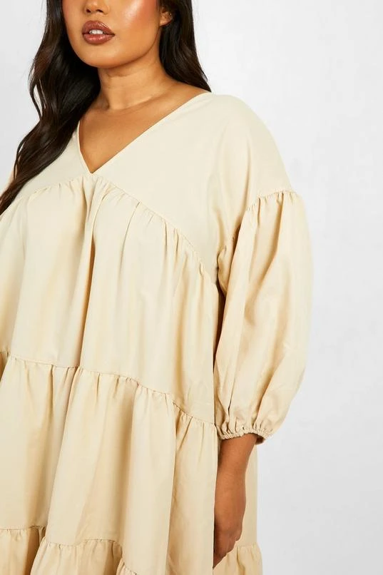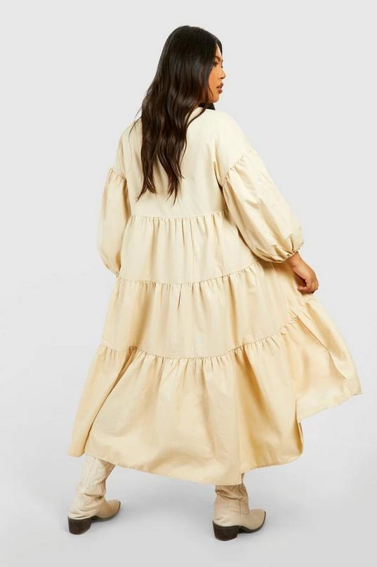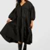 BOOHOO Plus Poplin V Neck Tiered Midi Smock Dress