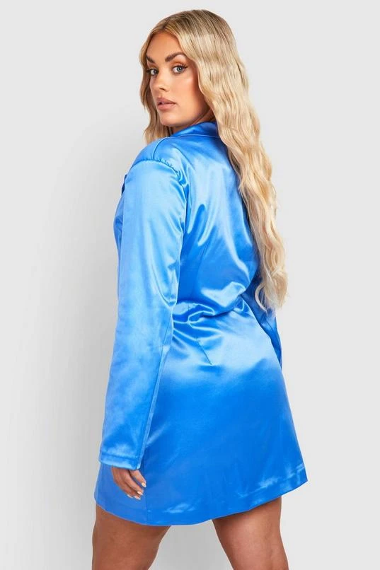 BOOHOO Plus Power Shoulder Satin Blazer Dress