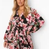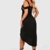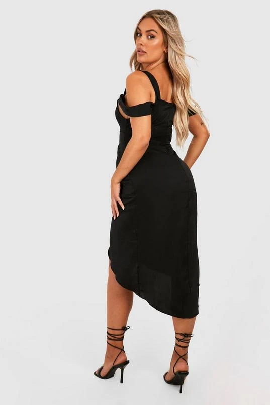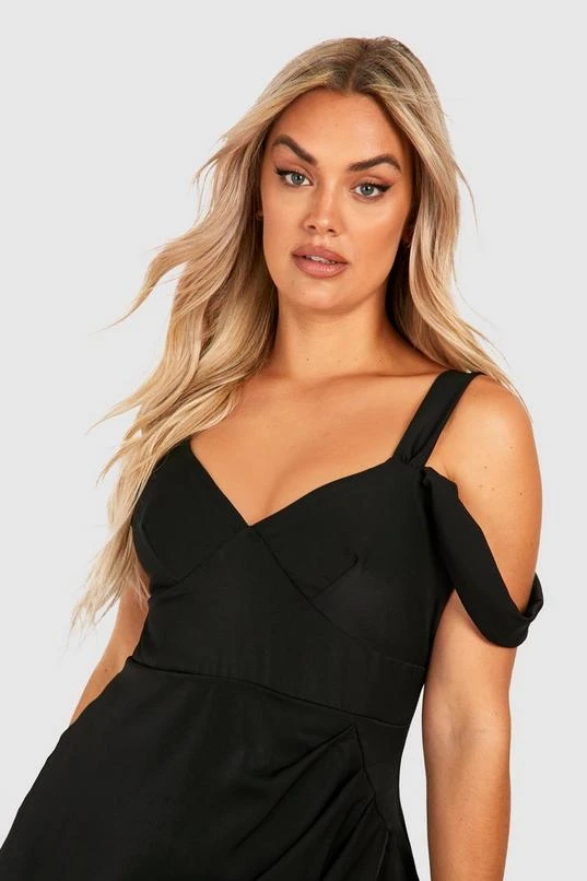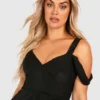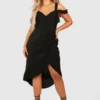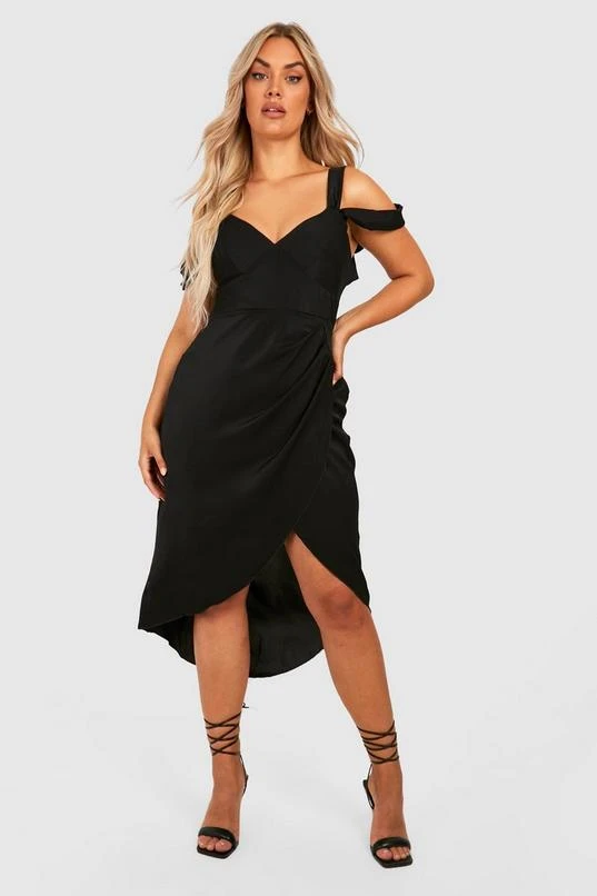 BOOHOO Plus Premium Satin Cold Shoulder Wrap Dress