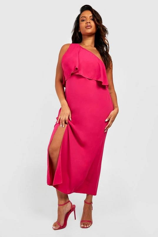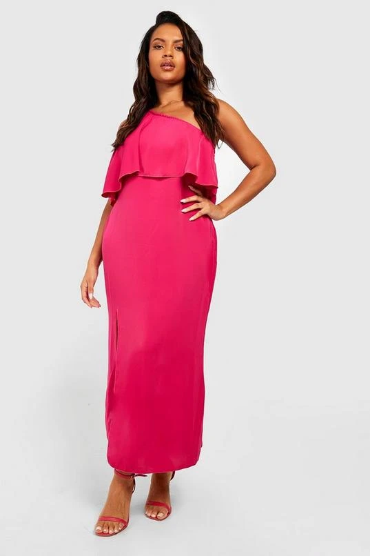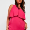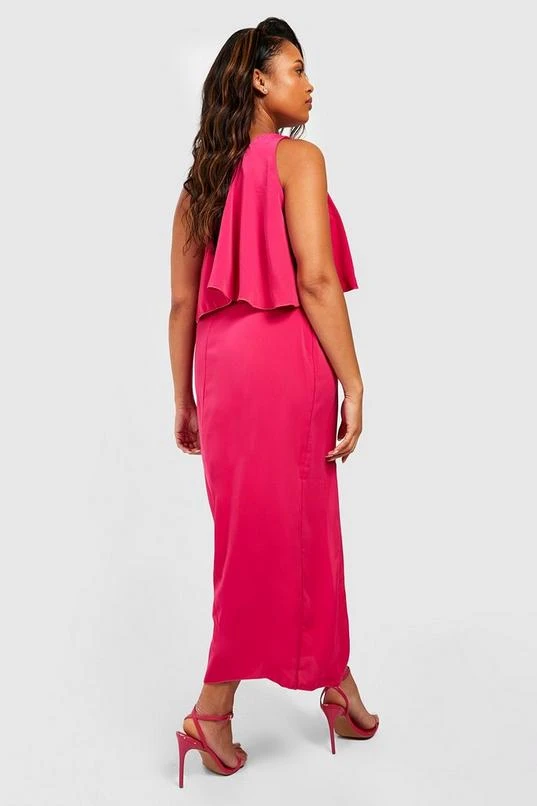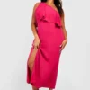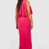 BOOHOO Plus Premium Satin Ruffle Midi Dress