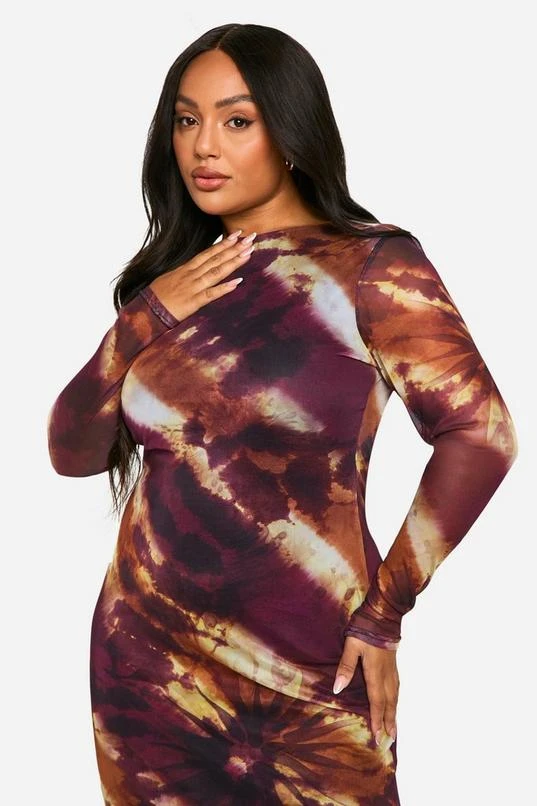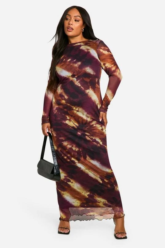 BOOHOO Plus Printed Low Back Column Maxi Dress