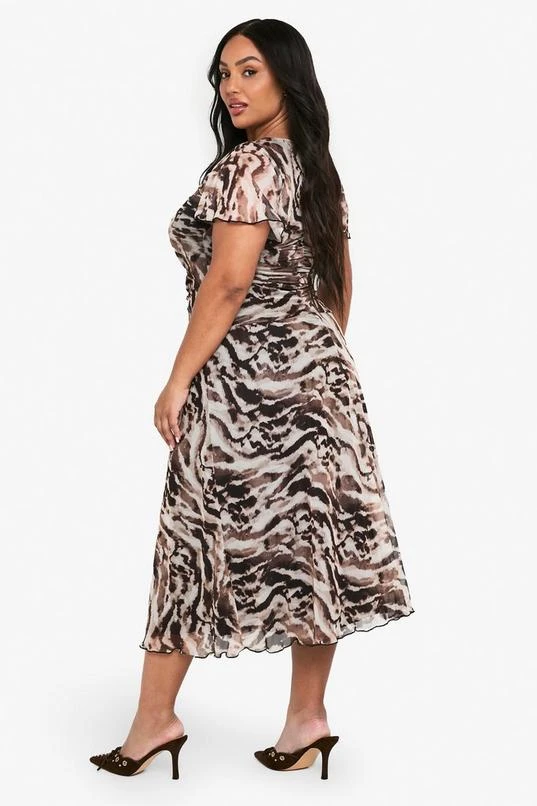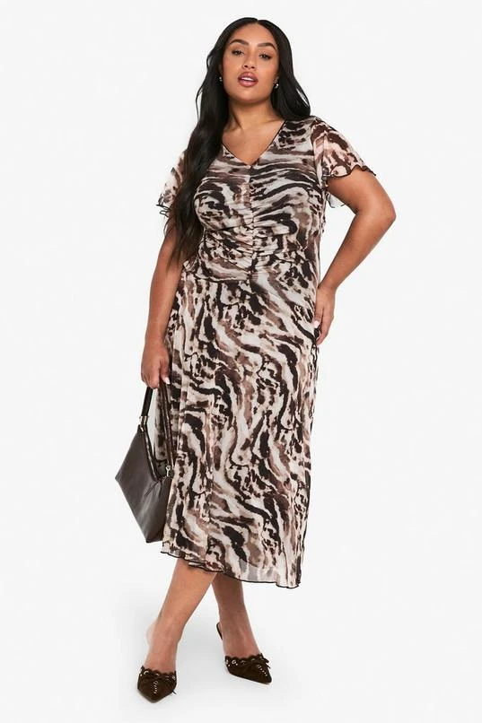 BOOHOO Plus Printed Mesh Rouched Midaxi Dress
