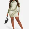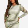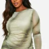 BOOHOO Plus Printed Mesh Ruched Bodycon Dress