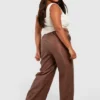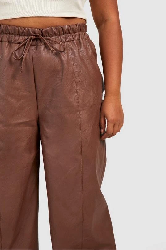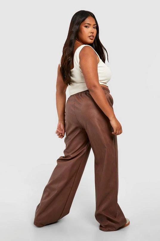 BOOHOO Plus Pu Seam Detail Straight Leg Trousers