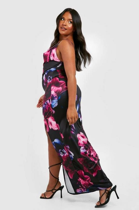BOOHOO Plus Recycled Floral Print Slinky Maxi Dress
