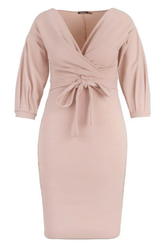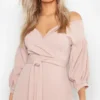 BOOHOO Plus Recycled Off Shoulder Wrap Midi Dress
