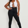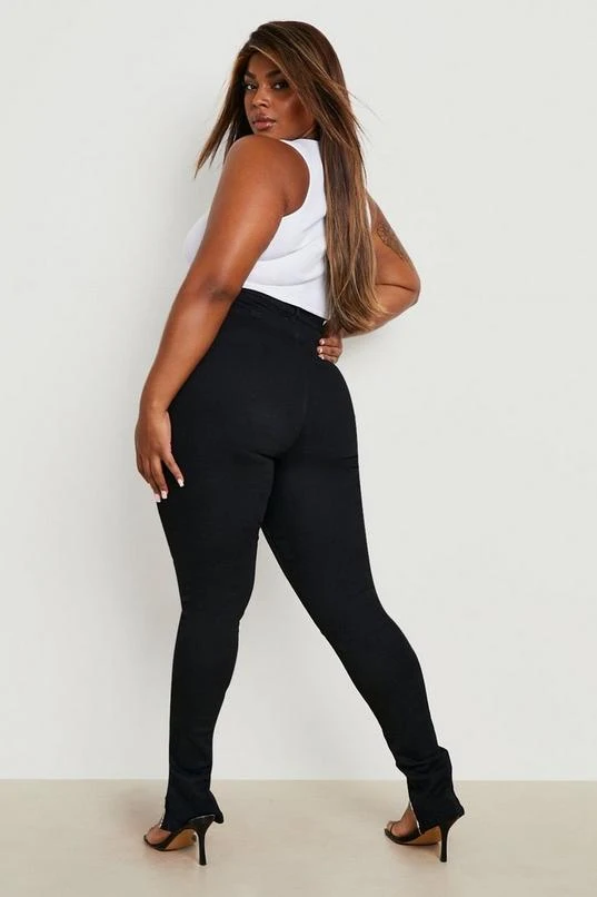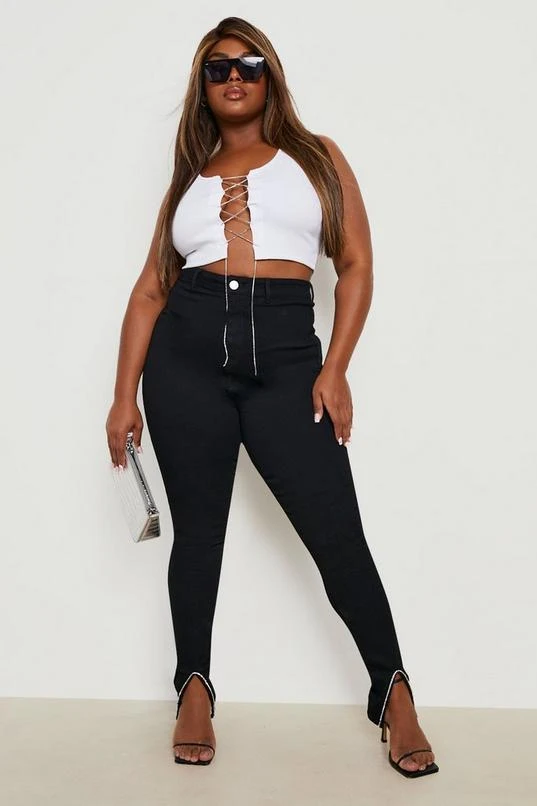 BOOHOO Plus Rhinestone Split Front High Rise Jean