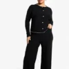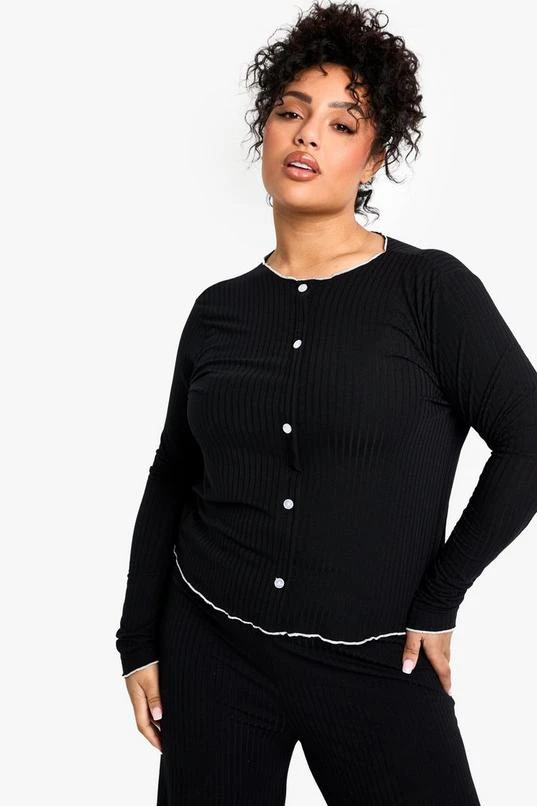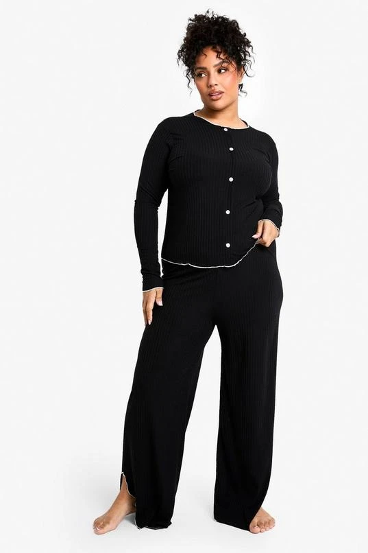 BOOHOO Plus Rib Contrast Button Rib Top & Trouser PJ Set