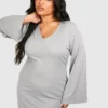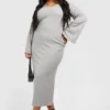 BOOHOO Plus Rib Flared Sleeve Column Dress