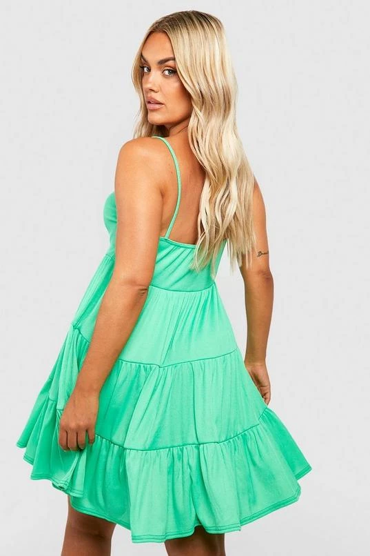 BOOHOO Plus Rib Strappy Tiered Smock Dress
