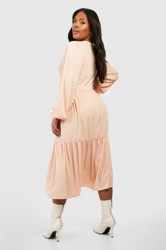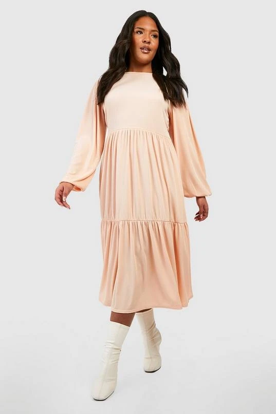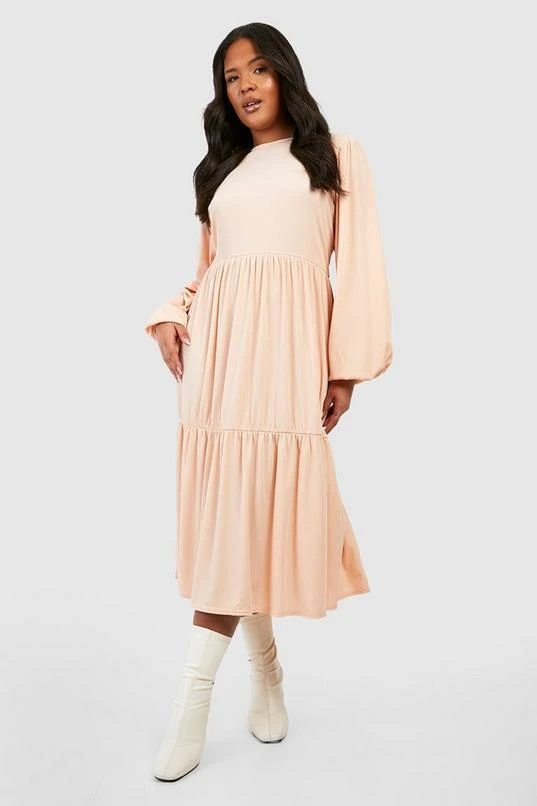 BOOHOO Plus Rib Tiered Midi Smock Dress