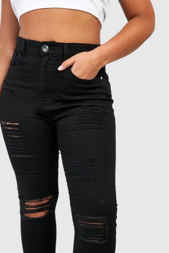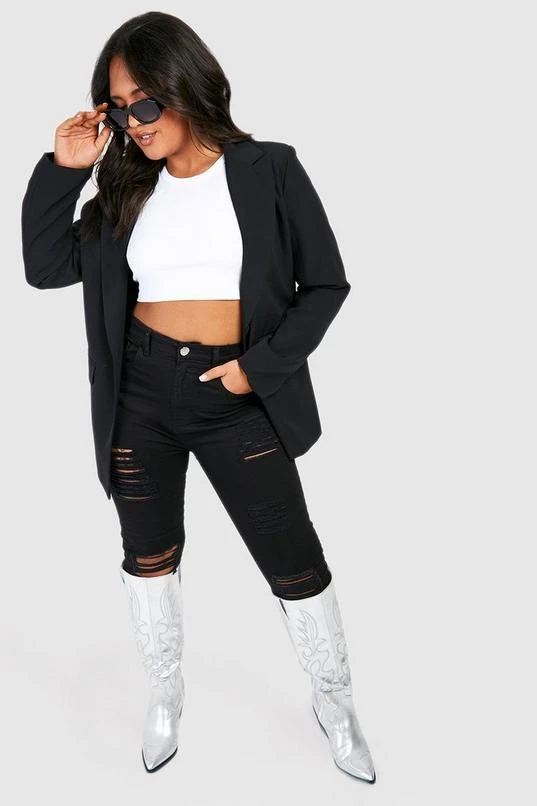 BOOHOO Plus Rip Knee Distressed High Waisted Skinny Jeans