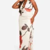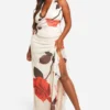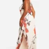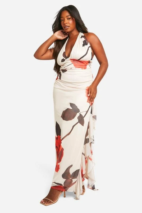 BOOHOO Plus Rose Print Mesh Ruched Ruffle Maxi Dress