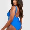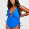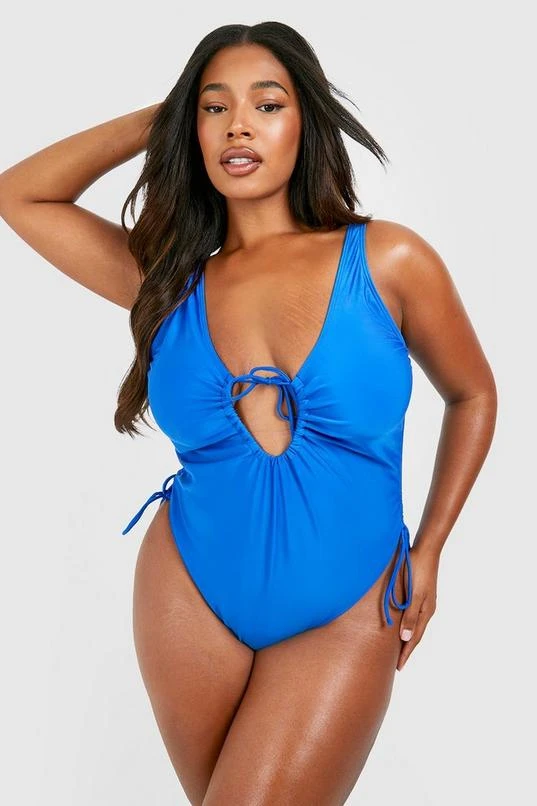 BOOHOO Plus Ruched Cut Out Tie Plunge Swimsuit