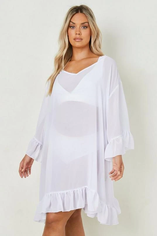BOOHOO Plus Ruffle Beach Dress