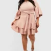 BOOHOO Plus Ruffle Belted Skater Dress