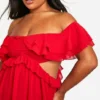 BOOHOO Plus Ruffle Cold Shoulder Maxi Dress