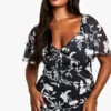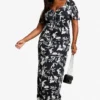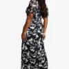 BOOHOO PLUS RUFFLE DETAIL SHORT SLEEVE PRINTED MAXI DRESS