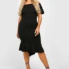 BOOHOO Plus Ruffle Fishtail Midi Dress