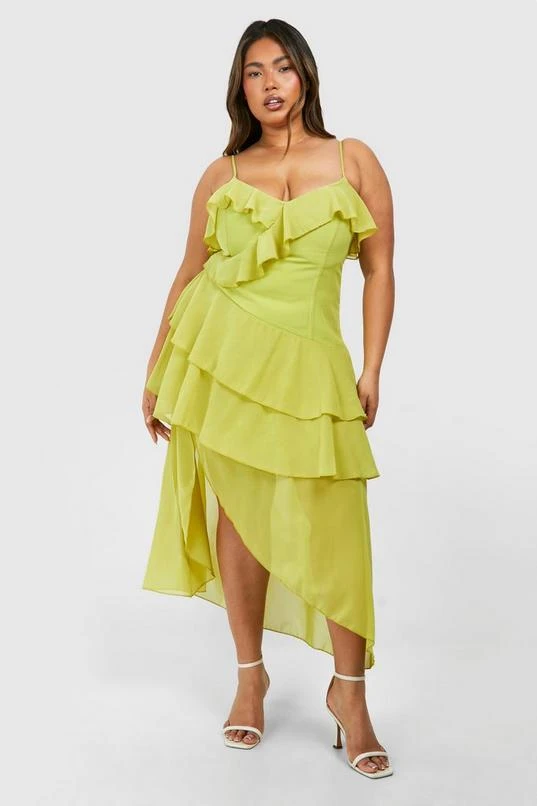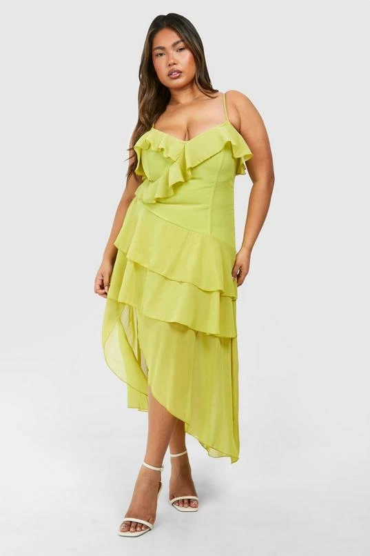 BOOHOO Plus Ruffle Midi Dress