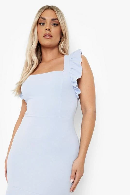 BOOHOO Plus Ruffle Strap Detail Peplum Midi Dress
