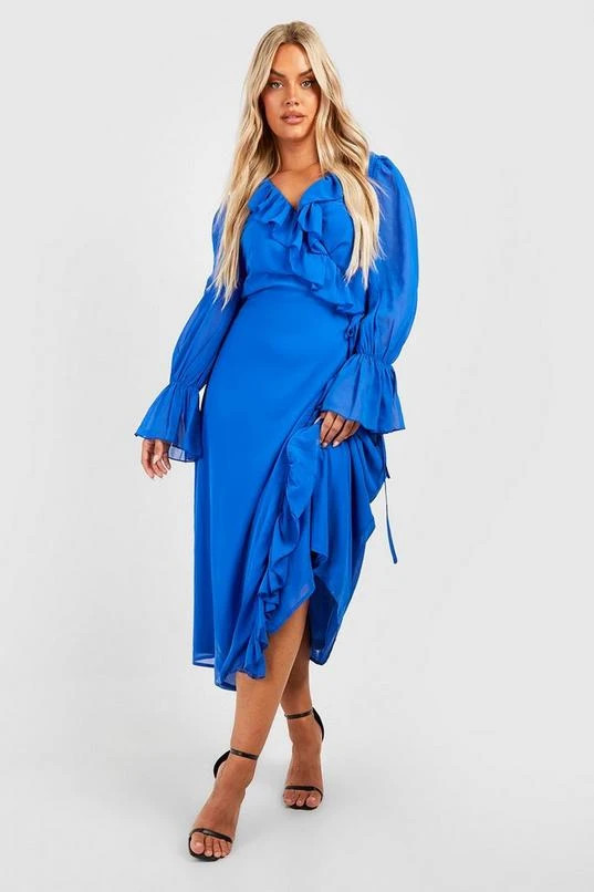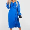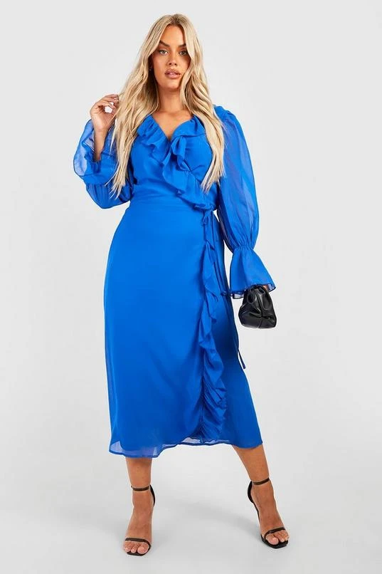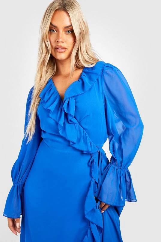 BOOHOO Plus Ruffle Wrap Dress
