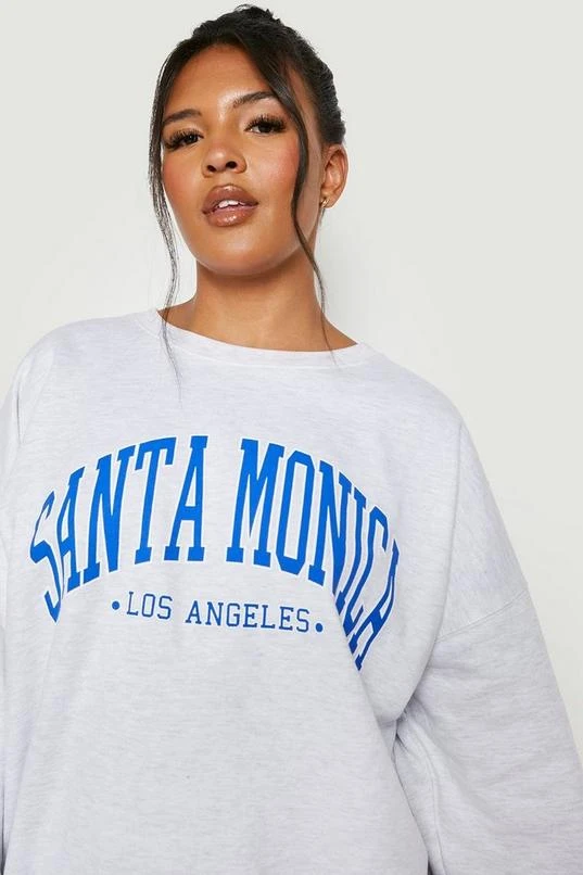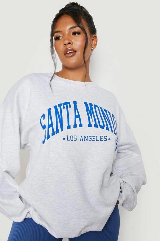 BOOHOO Plus Santa Monica Slogan Oversized Sweatshirt