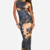 BOOHOO Plus Satin And Chiffon Mix Maxi Dress