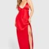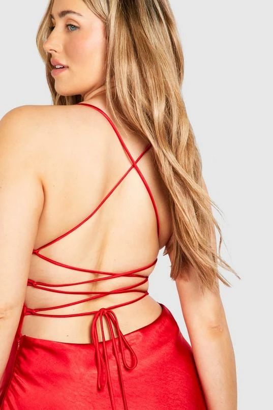 BOOHOO Plus Satin Cross Back Maxi Slip Dress