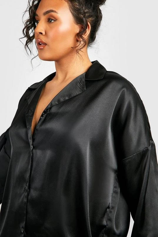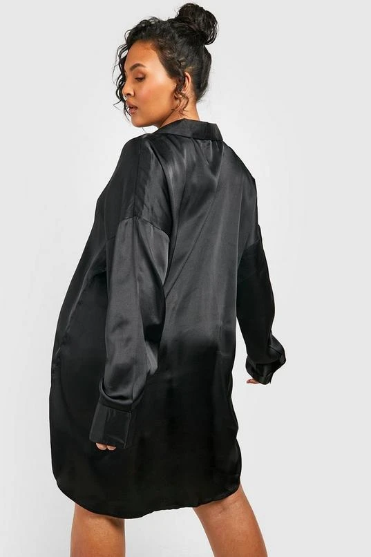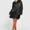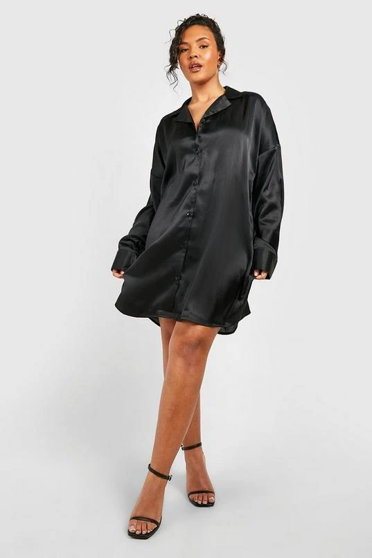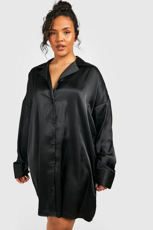 BOOHOO Plus Satin Dipped Hem Shirt Dress