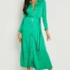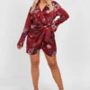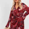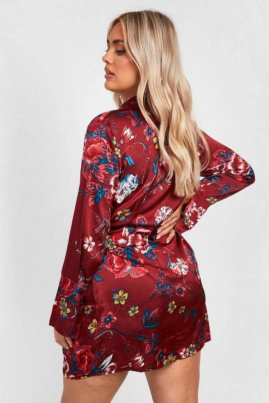 BOOHOO Plus Satin Floral Drape Wrap Shirt Dress