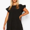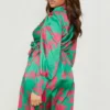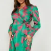 BOOHOO Plus Satin Floral Print Wrap Skater Dress