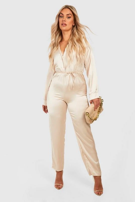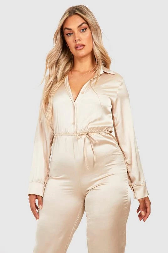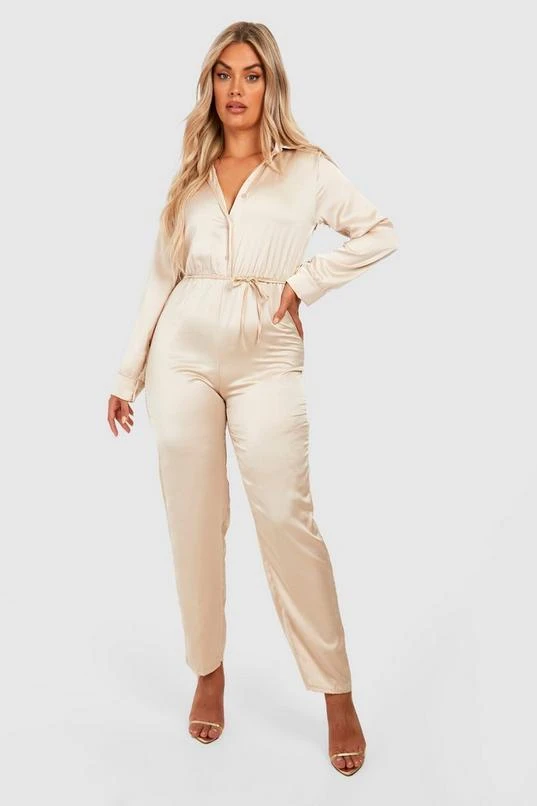 BOOHOO Plus Satin Jumpsuit
