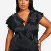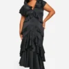 BOOHOO Plus Satin Ruffle Maxi Dress