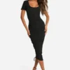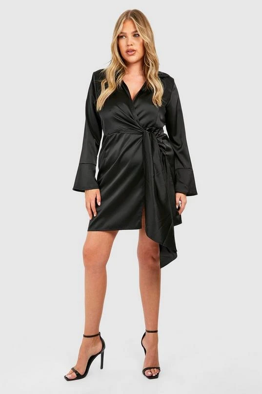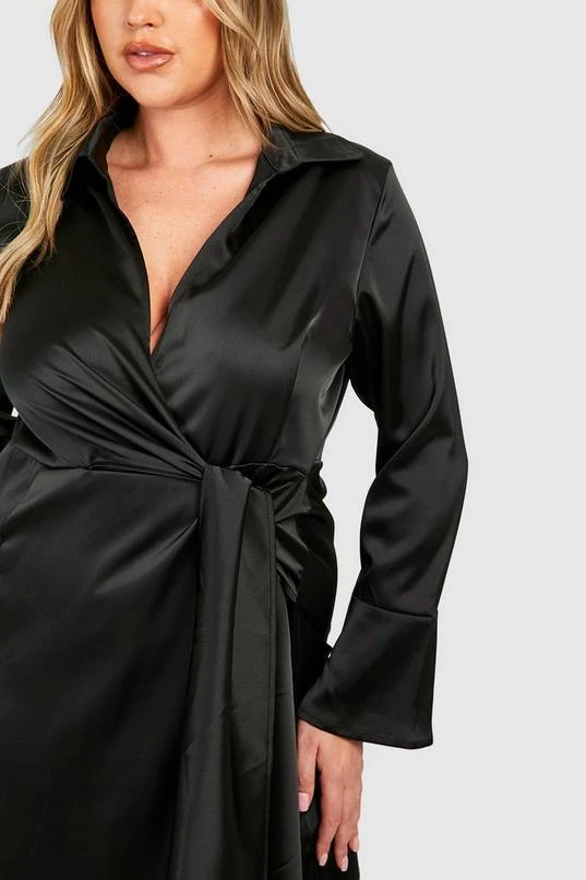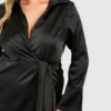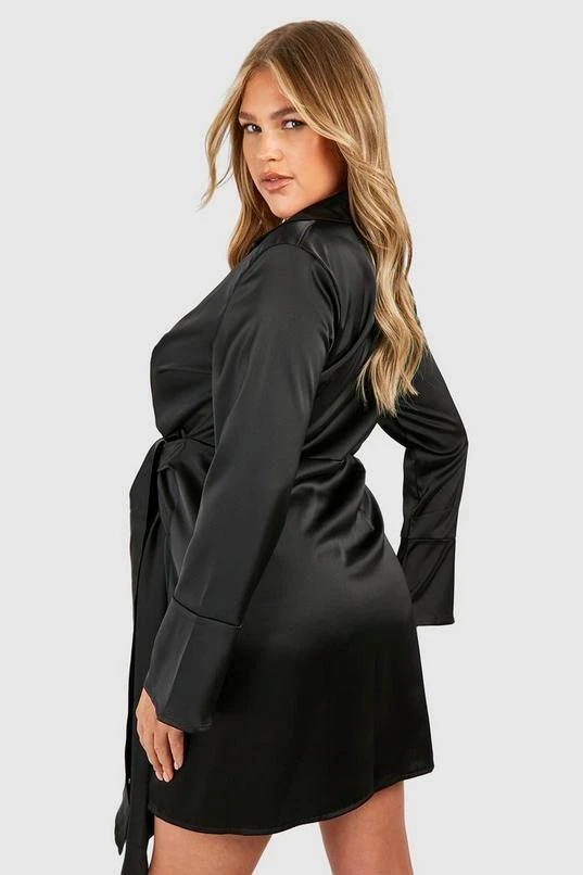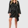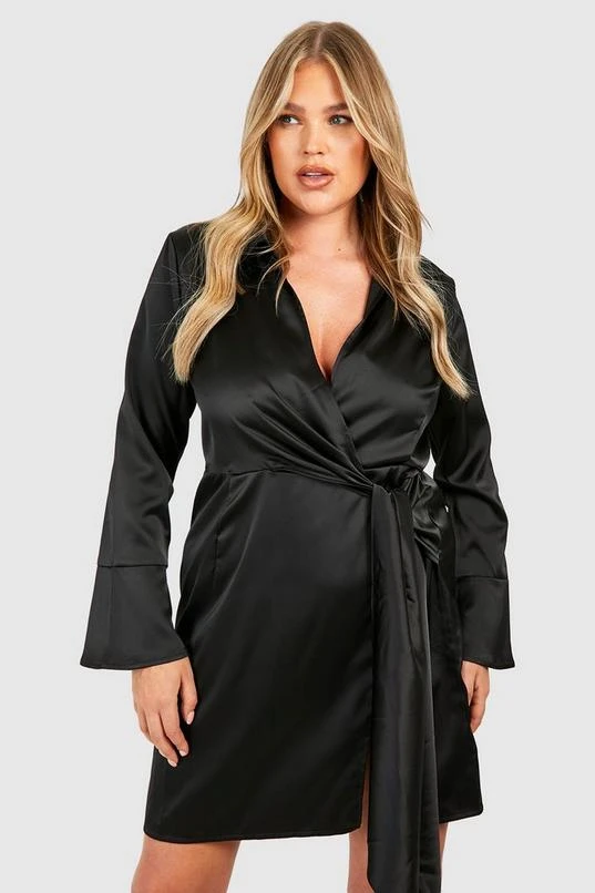 BOOHOO Plus Satin Wrap Tie Belt Dress