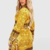 BOOHOO Plus Scarf Print Tie Waist Shirt Dress