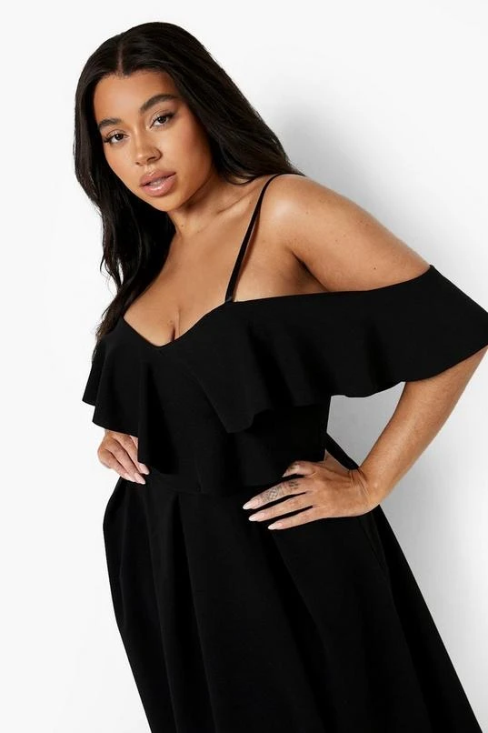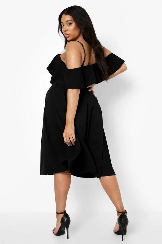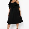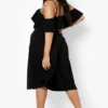 BOOHOO Plus Scuba Cold Shoulder Wrap Midi Dress