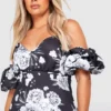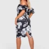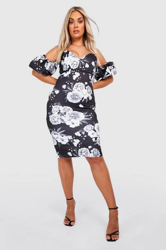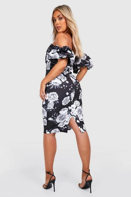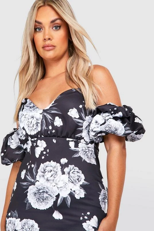 BOOHOO Plus Scuba Floral Off The Shoulder Midi Dress